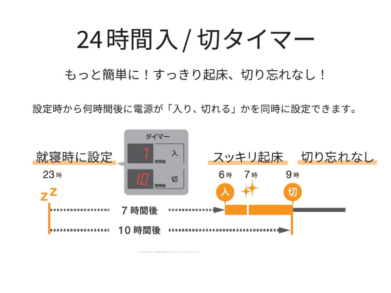 主な機能 | 24時間入・切タイマー / 室温設定 / エコ運転 | |