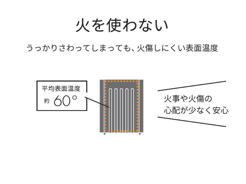 乾燥しにくく、火傷の心配も少なく、